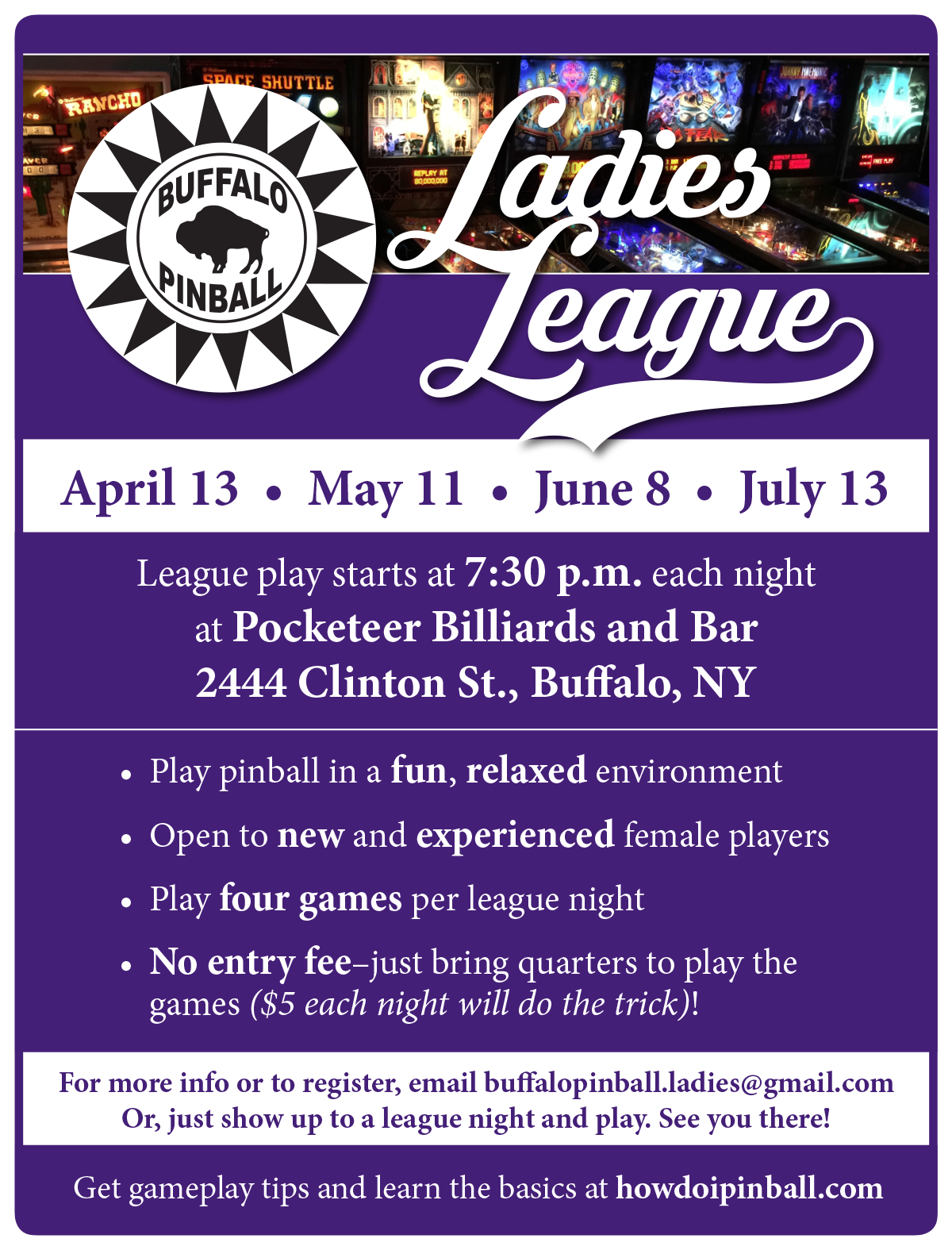 Signups are now open to all new members for the 2016-17 Buffalo Pinball League. Open spots will be filled on a first-come, first served basis until all 26 spots are filled. Anyone who registers beyond that limit will be issued a refund, put on a waitlist in case someone else drops out, and will be added in the order received.