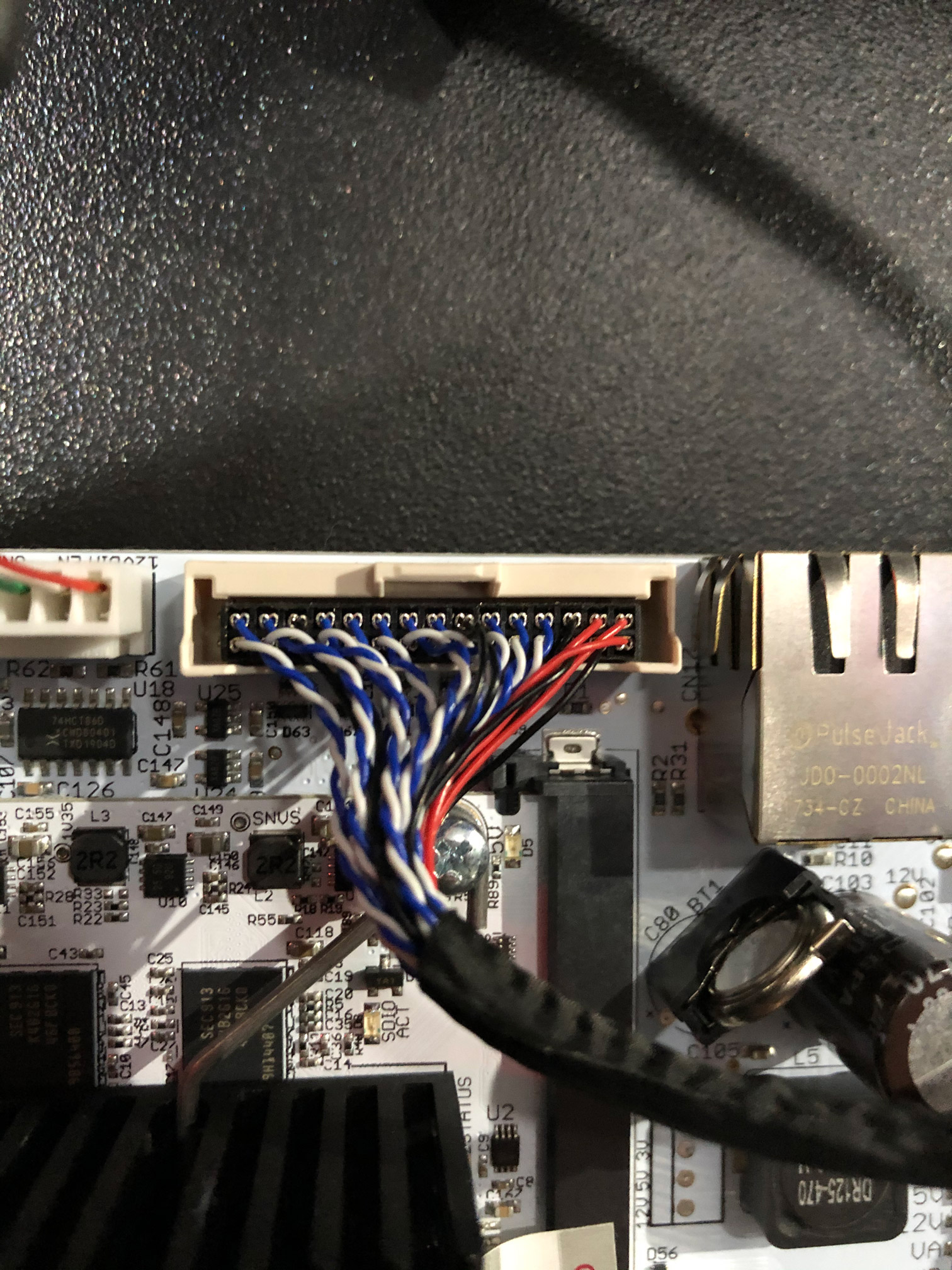 Stick the converter board above the main PCB, making sure you’re close enough to reconnect the ground cable to the post.