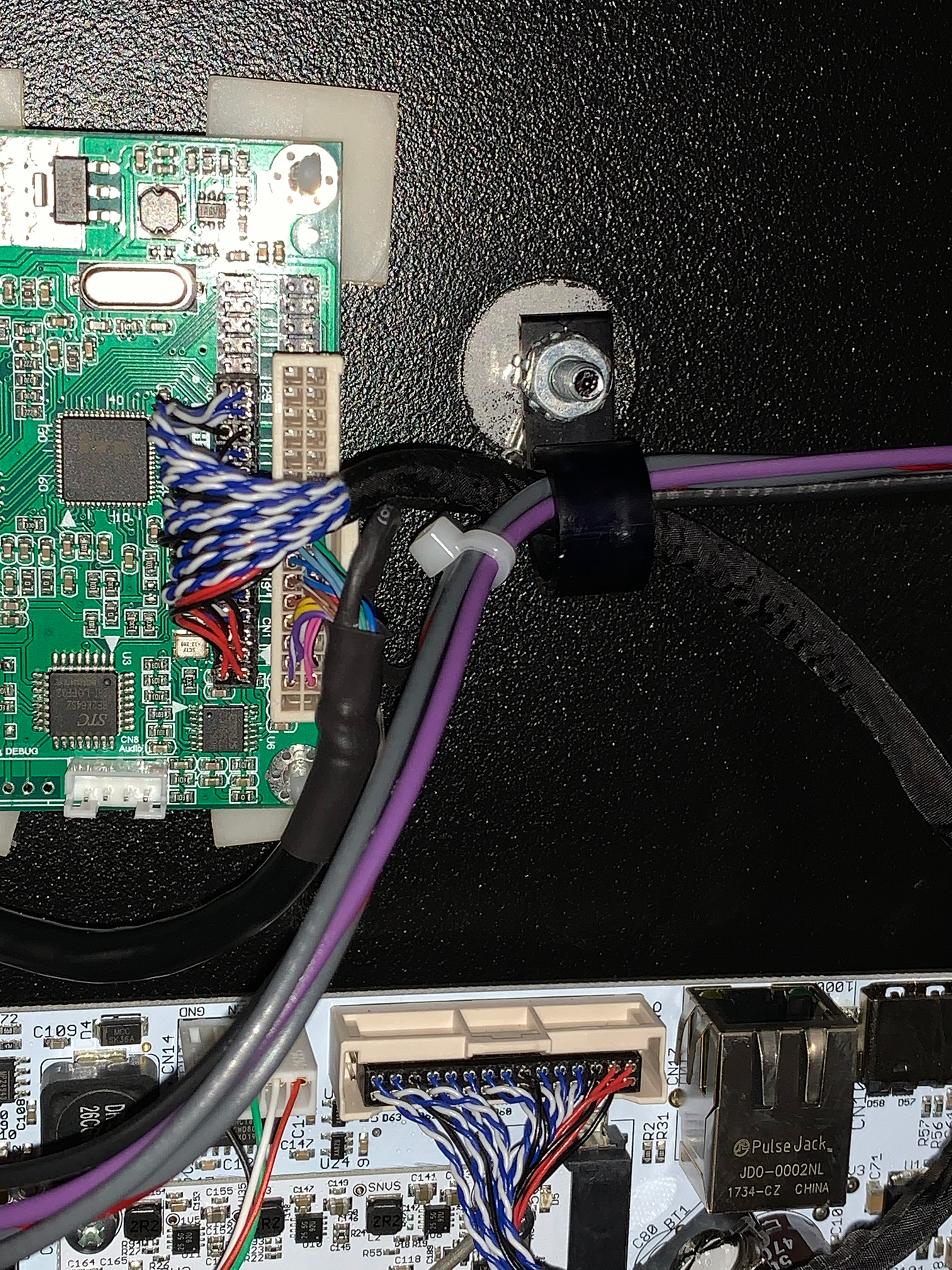 Connect the HDMI cable to the converter board, and feed it down into the cabinet, using the pre-installed cable ties to keep everything neat and clean.
